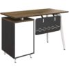Bàn chuyên viên cao cấp mặt gỗ melamine vát cạnh 45 độ hai cạnh dài, có yếm tôn, kết hợp chân bàn thép dập định hình sơn đen nhám kết hợp mạ.
