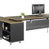 Bàn lãnh đạo cao cấp Stellar chất liệu gỗ cao cấp có tủ phụ liền bàn sử dụng phụ kiện cao cấp, khóa số và núm nắm kiểu mới, nắp thông hơi kết hợp luồn dây cpu hiện đại. Chân bàn thép dập định hình sơn trắng kết hợp ốp đen.