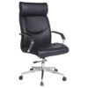 Ghế lãnh đạo có đệm tựa bọc da, da CN hoặc PVC. Chân tay nhựa sơn phủ màu nhũ bạc.