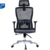 Ghế lưới lãnh đạo cao cấp khung tựa nhựa bọc vải lưới, đệm mút bọc vải có ốp đệm bằng nhựa. Cơ cấu tựa đầu chỉnh cao thấp phù hợp người ngồi. Tay ghế chữ T có thể tăng chỉnh chiều cao. Ghế có khả năng ngả hãm thư giãn. Chân thép mạ