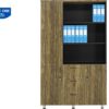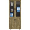 Tủ tài liệu 3 khoang gỗ Melamine, phía trên gồm 2 khoang khung cánh khung kính để tài liệu, 1 khoang cánh gỗ bên trong có suốt treo áo, phía dưới có 3 cánh mở